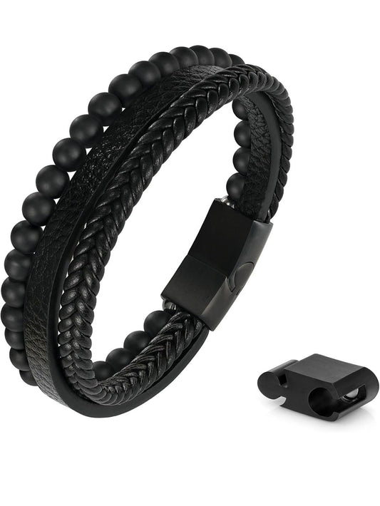 Leather Layered Tigers Eye Bead Bracelet - Lava Rock Stone Jewelry For Women And Men
